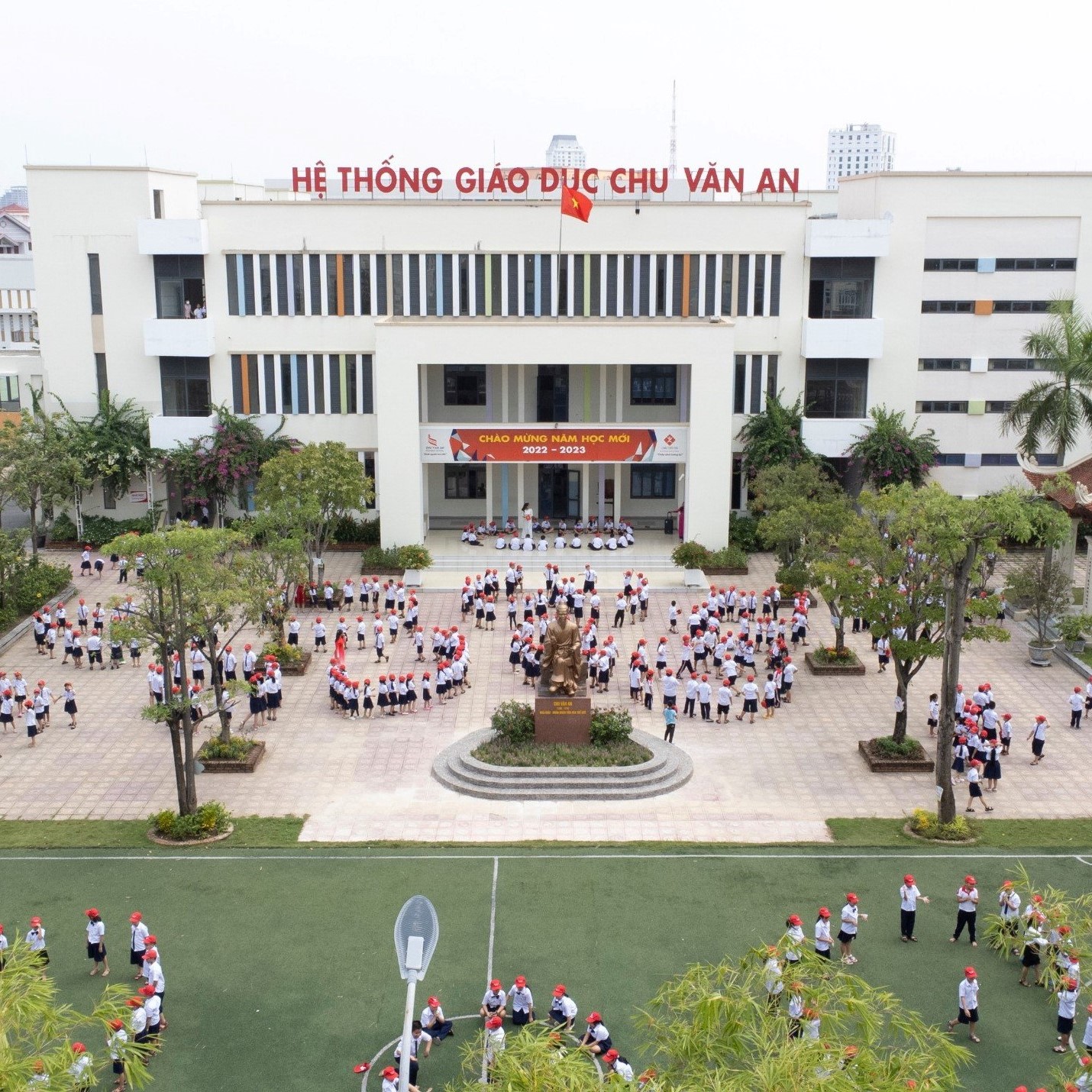 Khuôn viên rộng 1,6 hecta, phủ kín cây xanh và hoa. Phòng học thiết kế mở, thân thiện, hiện đại. Hệ thống phòng chức năng và các khu hỗ trợ đồng bộ, tiện nghi: